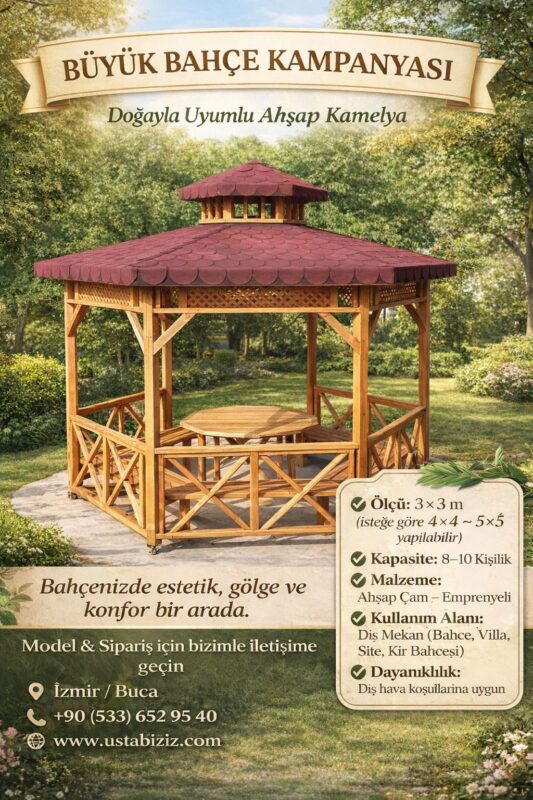 3*3 AHŞAP MASALI VE OTURAKLI KARE KAMELYA